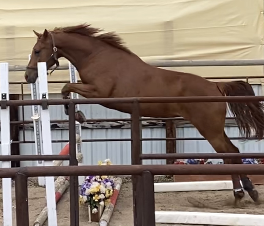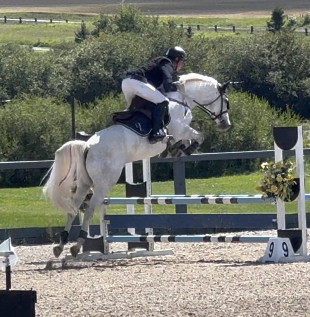 Out of the fabulous Hunter Show mare, Sorbet. Game and athletic. Perfect changes, excellent jumping technique, brave and fast. This mare is going to be a future winner in the CH/AA jumpers and possibly more! And… she stays sparkling clean!